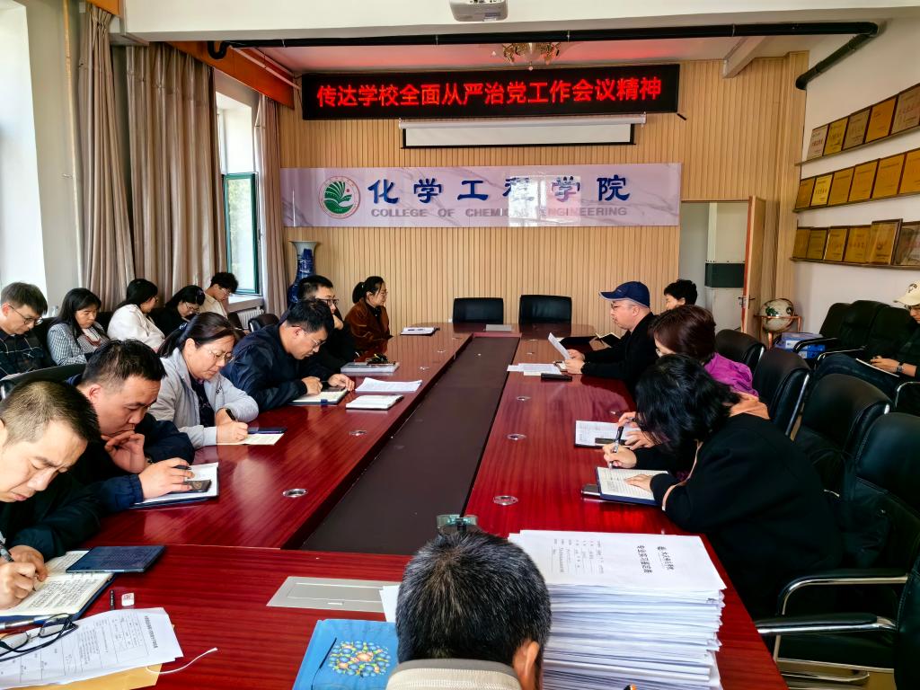 2024年4月24日,化学工程学院召开教职工大会,学习传达学校2024年全面从严治党工作会议精神,会上,党总支副书记徐宏书传达了学校党委书记赵科学在学校全面从严治党工作会议上的讲话,院长高清河要求全体教职工要认真领会赵书记的讲话精神,深入学习习近平总书记关于党的自我革命的重要思想,深刻领会开展党纪学习教育的重大意义,教育引导党员干部学纪、知纪、明纪、守纪,进一步营造风清气正的教书育人环境。