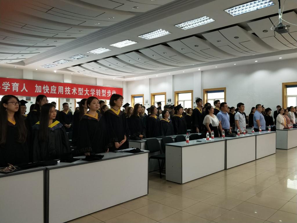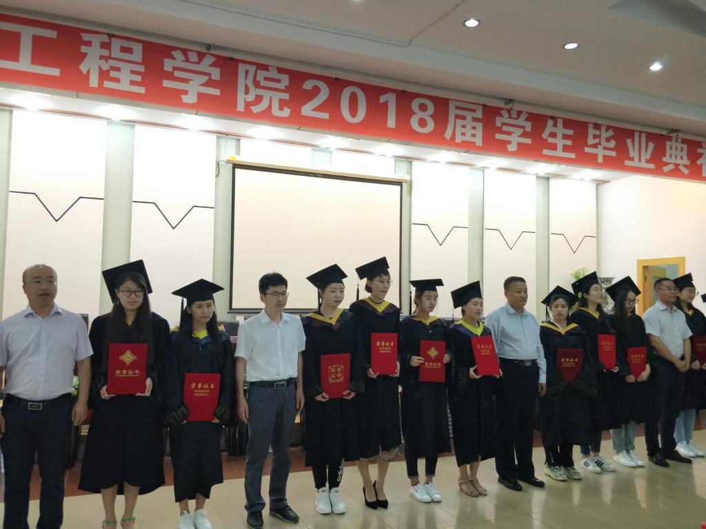 毕业典礼在庄重的国歌声中拉开帷幕,典礼上,学生党支部书记徐宏书宣读了关于表彰2018届铁人式优秀毕业生、校优秀毕业生、省三好学生、优秀共产党员的决定,由学院领导为获奖的同学颁发荣誉证书。张晓钰同学代表在校生发言,谢云琦同学代表毕业生发言,化工系主任陈成作为教师代表发表了真挚动人的感言,院长刘洪胜为全体毕业生致辞,他首先向学海泛舟、圆满完成学业的同学们表示祝贺,为同学们的成长、成才付出辛勤劳动的老师和家长们致以崇高的敬意;他讲到,只有毕业,才知同学亲,只有远离,才知母校情,并希望同学们肩负起服务社会和报效祖国的历史使命,并祝愿同学们前程似锦,祝愿同学们的明天更加美好。最后,刘洪胜院长为每一位毕业生拨流苏,颁发学位证并留下珍贵合影。
