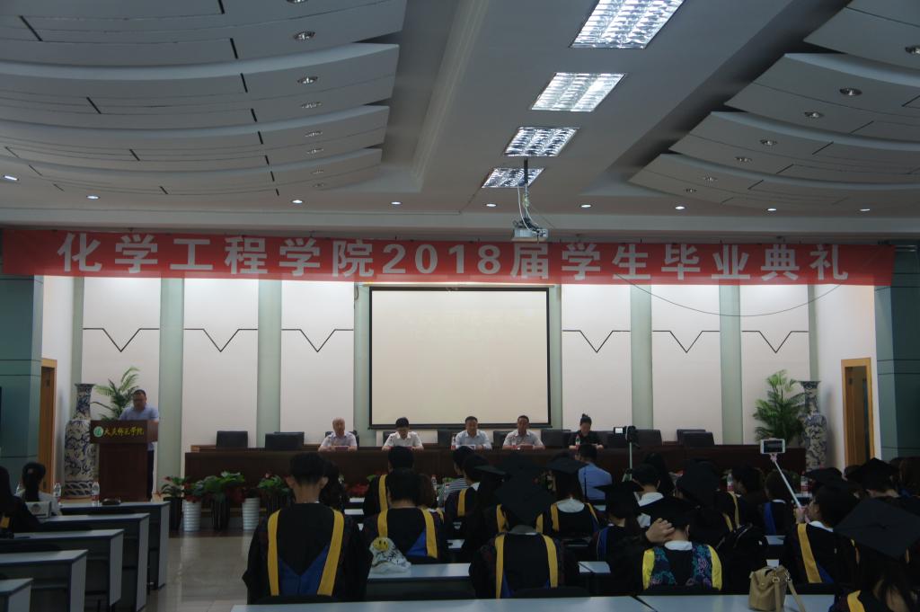 2018年6月20日下午13:30,化学工程学院2018届学生毕业典礼在铁人讲堂隆重举行,化学工程学院院长、党总支书记刘洪胜、党总支副书记廉世伟、院长助理高清河、院长助理何丹凤、学生党支部书记徐宏书、全体辅导员、毕业班班主任和部分教师代表出席典礼,与全体毕业生共同庆祝这一喜获丰收的难忘时刻,典礼由廉世伟主持。