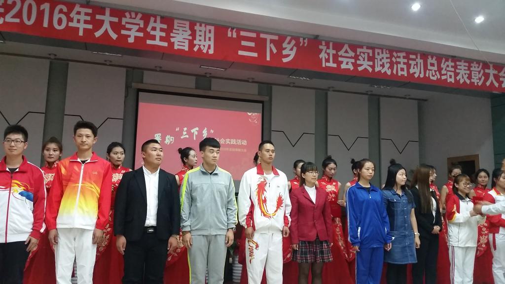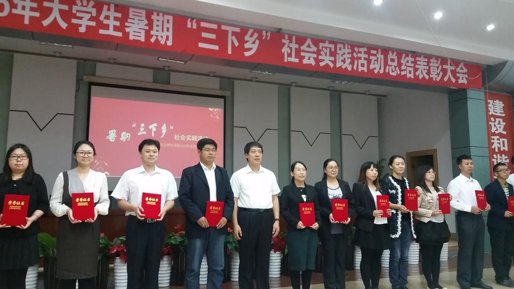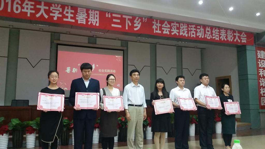 2016年9月22日在bwin必赢铁人讲堂举办bwin必赢2016年大学生暑期“三下乡”社会实践活动总结表彰大会。2014级学生贾俊作为我院“铁人魂”志愿服务团队的代表,在大会上发言与其他学院进行经验交流。我院荣获bwin必赢2016年大学生暑期“三下乡”社会实践活动“优秀组织奖”;郭明悦老师获得“优秀指导教师”称号;潘超、贾俊、武媛媛、周童、邵佳宁、李国选六名同学获得“先进个人”称号。