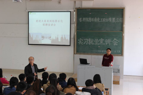 化学工程学院于2017年3月27日下午1:30在主楼3-1召开了实习就业宣讲会,主讲单位为吉林松原石油化工股份有限公司,化学工程学院领导及大三、大四学生参加了本次宣讲会。松原石化人力资源部经理向同学们介绍了公司的运营状态,基本状况及企业内部环境,同时向同学们展示了公司内部的奖励方式以及薪资待遇、培训方式、人才晋升渠道等。随后,松原石化张副总表示会进一步与化学工程学院做产学研合作,建立长期校企合作模式。