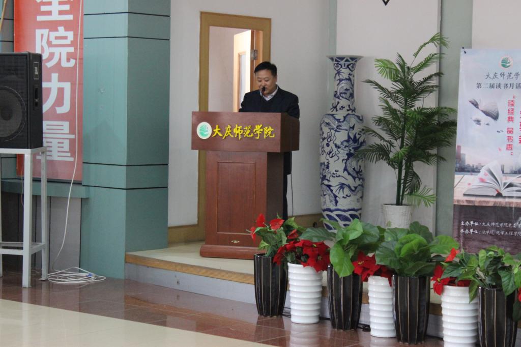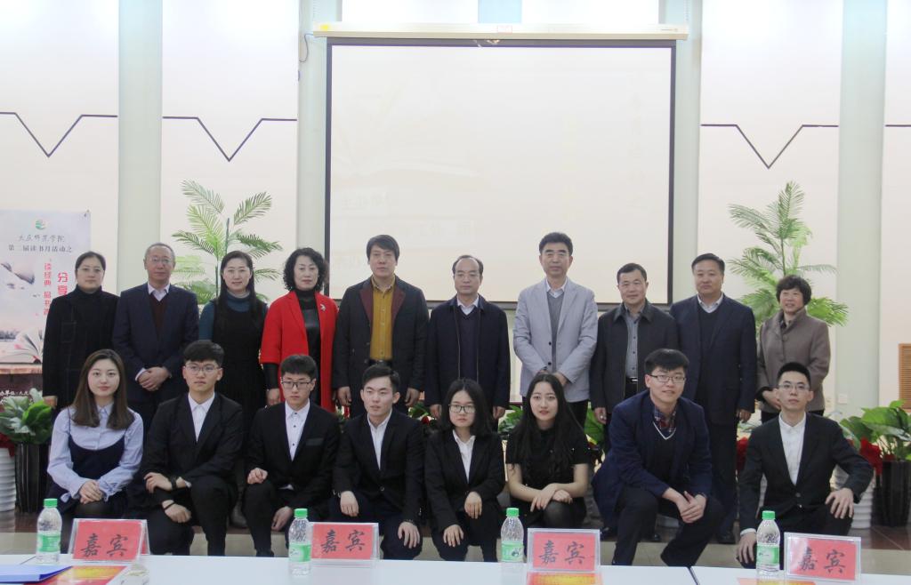 2017年4月12日15时,由我院与法学院团总支联合举办的bwin必赢第二届读书月活动之“读经典品书香”分享会在bwin必赢铁人讲堂举行。校党委副书记、纪委书记王革、党委副书记刘恒以及学工处、机关各部门、各二级学院的领导和老师们出席了分享会。