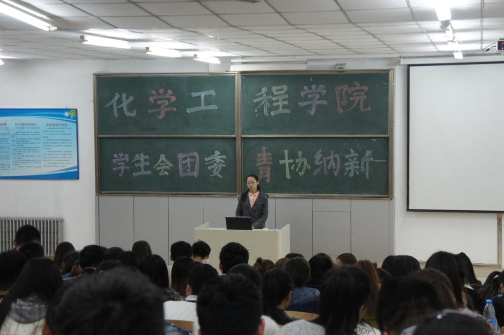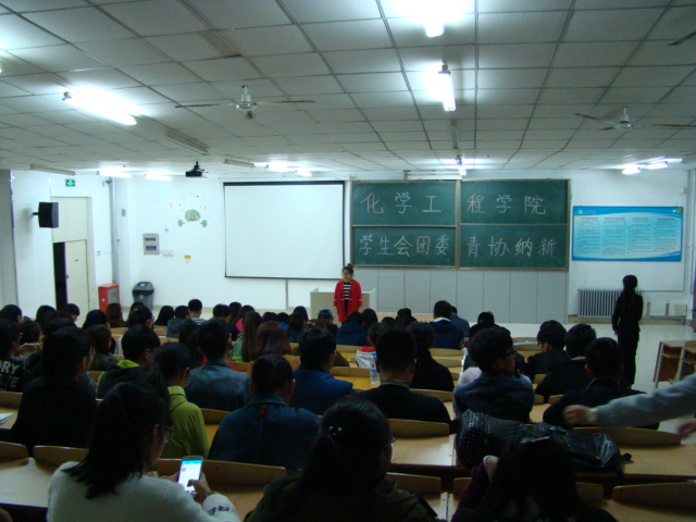 化学工程学院本次“学生会、团总支、青年志愿者协会”纳新大会让我院储备了大量精英,并让学生在一个成熟的平台上更进一步提升自己,继续发扬我院的优良院风精神。晚上八点纳新大会圆满完成,本次纳新为我院学生工作队伍注入新鲜血液,更能提高我院学生工作的工作效率。